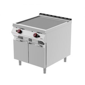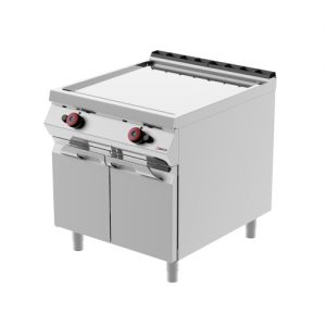 Fry top a gas piastra doppia con porte battenti