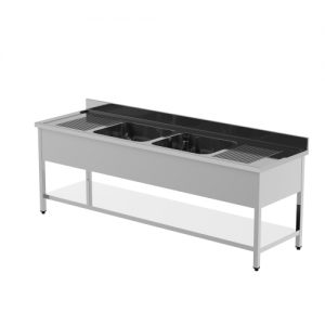 Lavatoio basic su gambe 2 vasche e gocciolatoio prof. 700 alt. 850mm