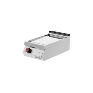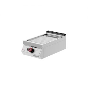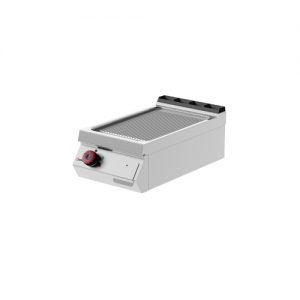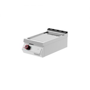 ribbed plate Model FTE72EBFry tops are fitted with a gas or electric heating system, which allows an even heat distribution over the whole plate and minimum heat loss. The cooking surface is thick and highly conductive. It is also equipped with a thermostat that allows the temperature to be kept constant. The worktop is equipped with a large hole for draining the cooking liquids into a tray placed under the plate and easily accessible for cleaning. Fry tops are ideal for intensive use.