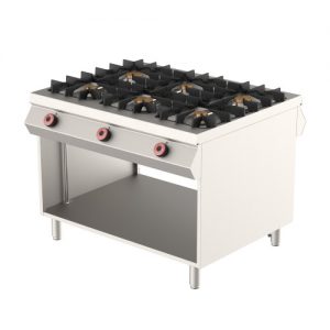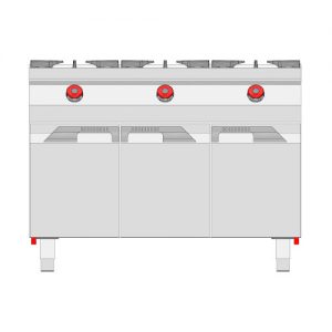 Pass-through gas range 6 hermetic burners on neutral element with hinged door