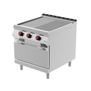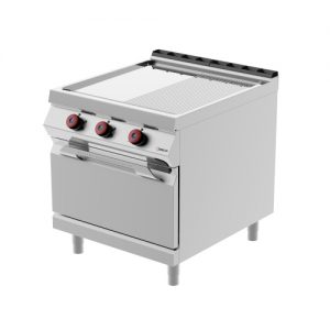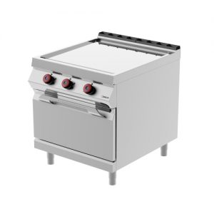 Double plate electric fry top with electric oven