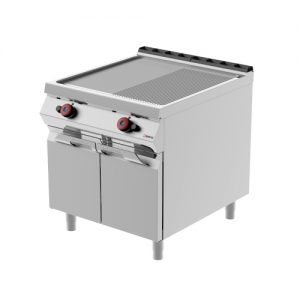 Double plate gas fry top on neutral element with hinged doors