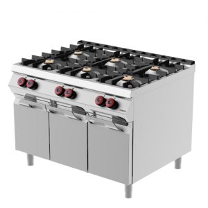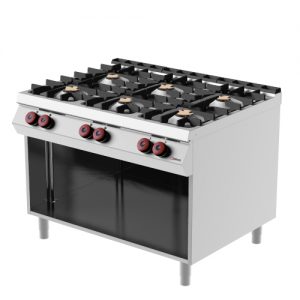 Gas range 6 hermetic burners on neutral element with hinged doors