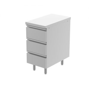 élément tiroirs Model CPGN0005Les blocs-tiroirs des cuisines professionnelles permettent de ranger la vaisselle, les couverts, les ustensiles et les ingrédients de manière ordonnée. Ils sont entièrement fabriqués en acier inox AISI 304 cr_ni 18/10, facile à nettoyer. Pour améliorer la glisse des tiroirs et la robustesse, ils sont équipés de glissières télescopiques. Les blocs-tiroirs sont disponibles en différentes tailles et avec des tiroirs 1/2, 1/3, 1/4 dans différentes compositions.