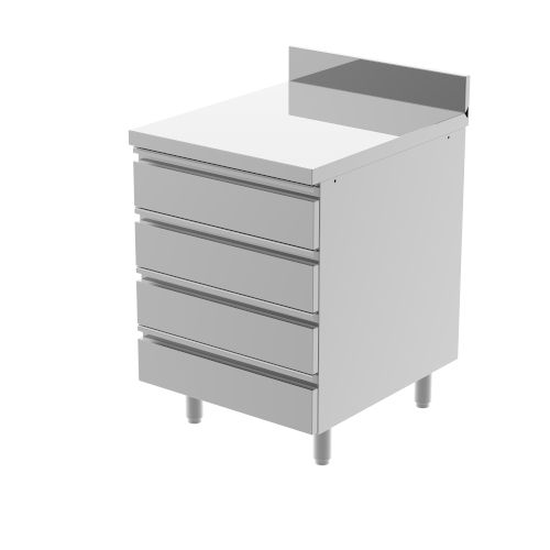 - Plan de travail en acier ép. 40 mm Avec 4 tiroirs 1x bruciatore in ghisa Ø130 mm