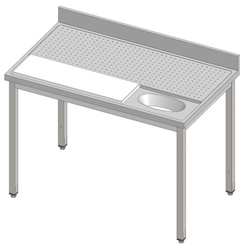 - Plan de travail en acier avec dosseret ép. 40 mm Dosseret h 100 mm Avec bac de collecte des liquides de viande / poisson et planche à découper en polyéthylène 1x bruciatore in ghisa Ø130 mm